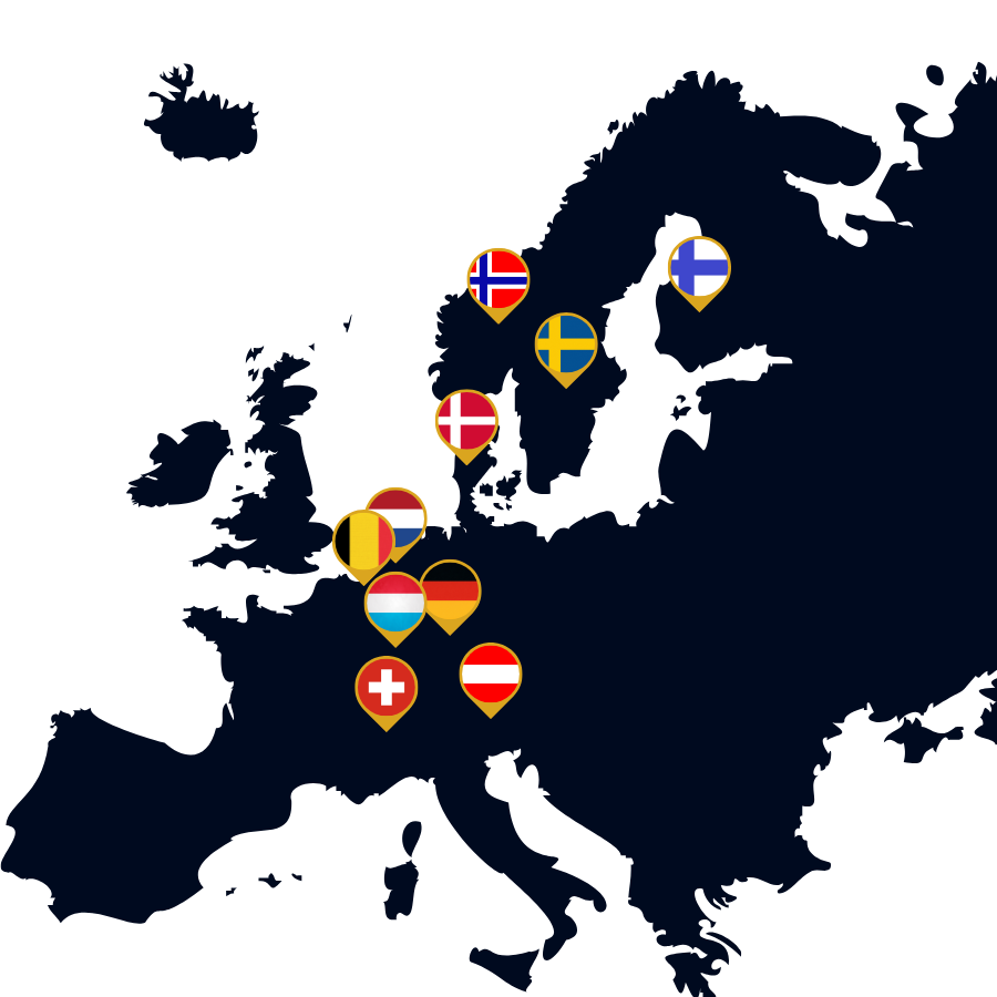 Náš medzinárodný predajný tím v súčasnosti predáva produkty a služby našich klientov na ekonomicky najsilnejších trhoch v Európe: v nemecky hovoriacich krajinách (Nemecko, Rakúsko, Švajčiarsko), v Beneluxe (Holandsko, Belgicko, Luxembursko) a v škandinávskom regióne (Dánsko, Švédsko, Nórsko, Fínsko). Medzi hlavné argumenty patrí, že v Nemecku pôsobí viac ako 3 milióny aktívnych podnikov a v škandinávskom regióne bolo v roku 2022 registrovaných viac ako 1,6 milióna spoločností. Čo sa týka ekonomickej výkonnosti a kúpnej sily, HDP na obyvateľa v týchto krajinách výrazne presahuje priemer EÚ (Luxembursko: 242 % priemeru EÚ v roku 2024, Nórsko: 163 %, Švajčiarsko: 151 %, pričom Holandsko a Dánsko tiež prekračujú priemer EÚ o +20–30 %).